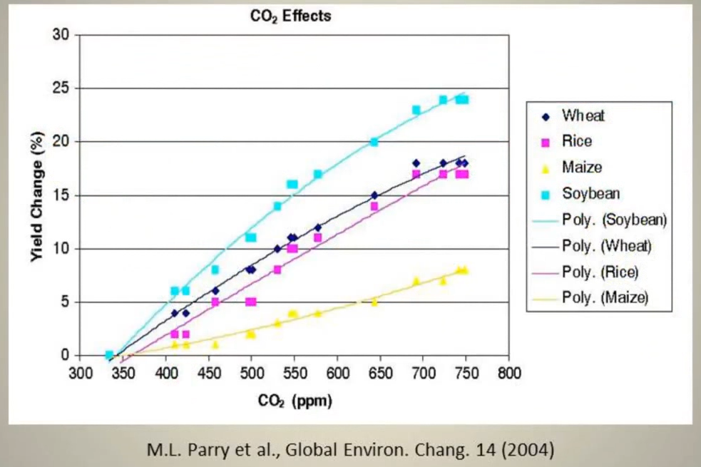 Eine positive Eigenschaft hat die CO₂-Zunahme der Atmosphäre. Das notwendige Wachstums- und Düngemittel aller Pflanzen nimmt zu, mehr CO₂ führt zu einem beschleunigten Ergrünen, steigert die Hektarerträge und bekämpft somit den Hunger in der Welt. Ohne Kohlendioxid wäre die Erde kahl wie der Mond. Das Leben auf der Erde braucht Wasser, Sauerstoff, ausreichend Kohlendioxid und eine angenehm milde Temperatur. Der optimale CO₂-gehalt der Atmosphäre liegt nicht bei 420 ppm wie derzeit, sondern etwa bei 800 bis 1200ppm, das ist um die 0,1%. Nicht nur für das Pflanzenwachstum, sondern wahrscheinlich für alle Lebewesen, also auch für uns eine Art Wohlfühlfaktor. Von dieser Idealkonzentration sind wir derzeit weit entfernt. Das Leben auf der Erde braucht mehr und nicht weniger CO₂ in der Luft. Untersuchungen der NASA bestätigen dies (auch hier) Und vor allem dieser Versuchsbeweis.
