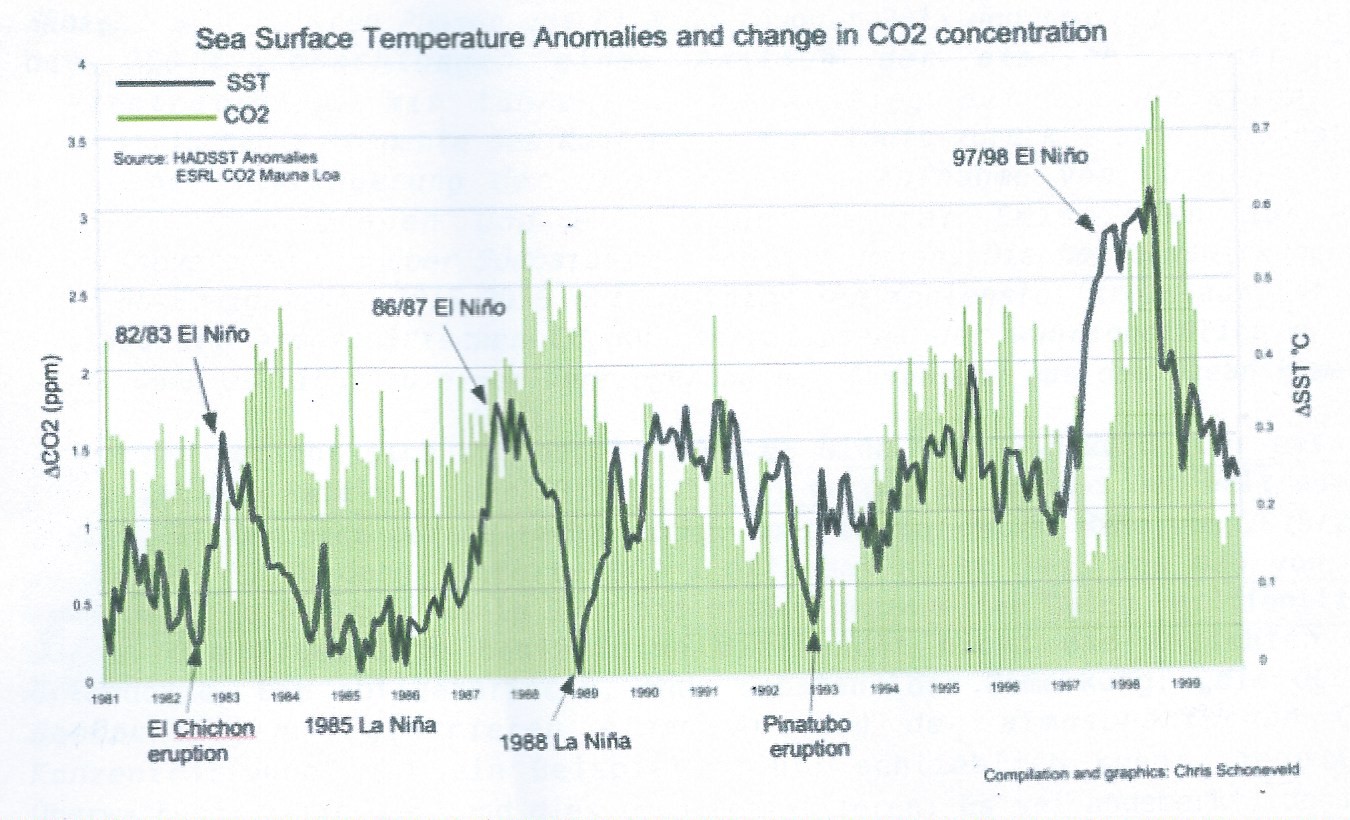 Bild 5: Entwicklung der SST-Meerestemperaturen und der CO2-Gehalte der Atmosphäre von 1981-2000