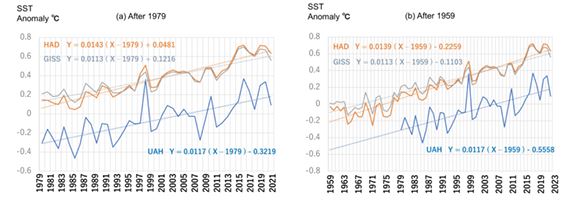Der Anstieg der Meerestemperaturen von 1979 bis 2021 liegt bei etwa 0,5 °C (Bild 6) ((a) After1979), was einem CO2-Anstieg in der Atmosphäre von 335 auf 415 ppm entspricht. (Bild 3)