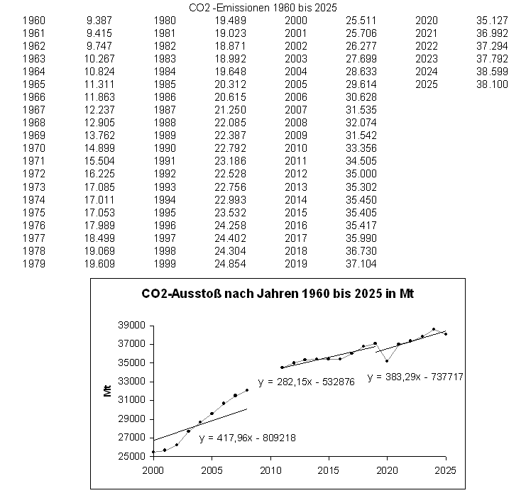Deswegen stelle ich die Tabelle mit den CO2- Ausstößen von 1960 bis 2025 noch einmal in den Anhang.