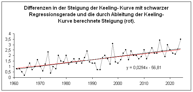 Ebenso wie die Steigung der Keeling- Messdaten linear mit der Zeit zunimmt.