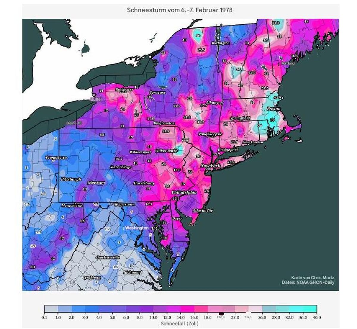 Anmerkung des Übersetzers: Dieser Blizzard fiel in meine Zeit in den USA. Im Anhang zum nächsten Kältereport (vrsl. Sonntag) wird beschrieben, wie die Amerikaner allgemein mit derartigen Ereignissen umgehen. – Ende Anmerkung