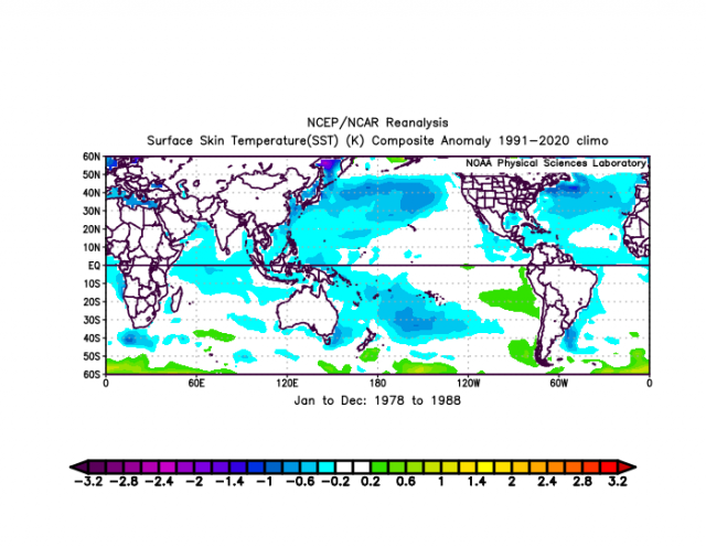 (Im Norden stärker als in den Ozeanen rund um den Äquator, insbesondere im tropischen Pazifik – das lässt sich zeigen, wenn man betrachtet, wie viel KÜHLER es in dem Jahrzehnt vor Beginn des geothermischen Einflusses war.)
