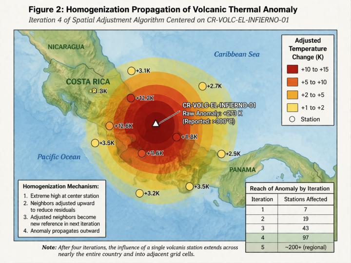 Die vorliegende Untersuchung begann mit einer routinemäßigen Überprüfung der Residuen tropischer Messstationen innerhalb des GHCN-Datensatzes (Global Historical Climatology Network). Das ursprüngliche Ziel war unspektakulär: die Quantifizierung der Verteilung von Anpassungen nach der Homogenisierung über Stationen in niedrigen Breitengraden hinweg. Was sich stattdessen herausstellte, war ein anhaltendes und statistisch anomales Signal, das sich auf eine einzelne Station in Costa Rica konzentrierte, im Folgenden als CR-VOLC-EL-INFIERNO-01 bezeichnet.