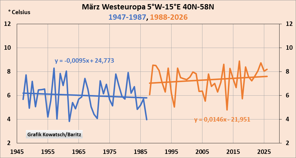 - Es gibt 8 Grunde dieses für uns angenehmen März-Klimawandels seit 1988