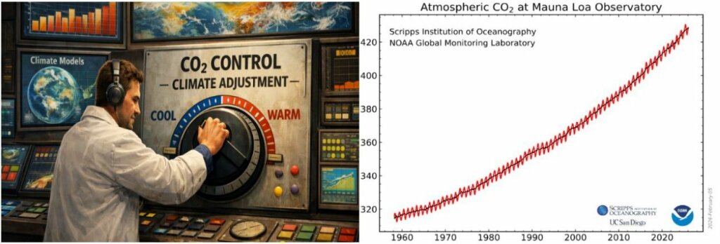 Deswegen ist diese Mainstream-Definition für Klimaänderungen auch grottenfalsch, die behauptet, dass hauptsächlich das vom Menschen ausgestoßene CO₂ zu der neuzeitlichen Klimaerwärmung geführt haben soll. Diese Definition ist lediglich ein festes Glaubensbekenntnis, wissenschaftlich aber eine Lüge. Und die linksgrünen Glaubenspolitiker betrachten CO₂ sogar als den Temperaturregelknopf, mit welchem man die globalen Temperaturen steuern kann!! Somit ist die westliche und vor allem die deutsche Klimapolitik unter dem Motto: „Kampf dem Klimawandel ein teurer Irrläufer einer CO₂-Glaubenssekte, der nur auf unser Geld abzielt! Bisher mit großem Erfolg, zumal die Politik diesen CO₂-Glaubensirrläufer in Gesetzen zunehmend festschreibt.