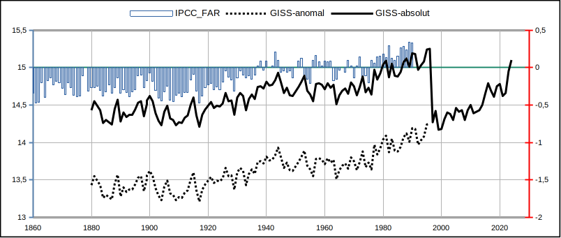Mit einer Referenz-Verschiebung tauchte er in 1997 den IPCC-Abschnitt (1860-1920) in die KEZ und öffnete damit das klimawandlerisch nutzbare Fenster von 0,8°C (14,5°C-15,3°C) weit nach unten hin. Seine Nachfolger erzielten damit in 2024 ein Rekord-Plus von 1,6°C (13,5°C-15,1°C).