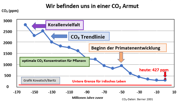 Zu den natürlichen Lebensgrundlagen dieses Planeten gehört eine ausreichende CO₂-Konzentration. Unter 290 ppm bekommt das Leben seine Schwierigkeiten.