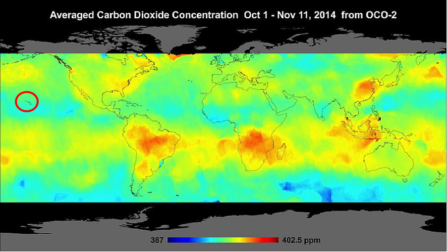 Gemittelte CO2-Konzentration vom 1.10.-11.11.2014 mit Bezug zur EIKE-Übersetzung von „OCO-Satelliten: Ausgefallene Geräte, leere Taschen“ (Willis Eschenbach)