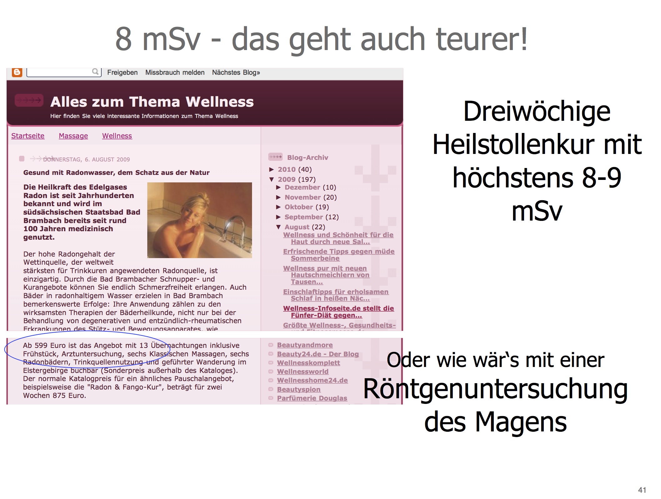 · die hohen Kosten zur Dosisreduzierung im Niedrigdosis-Bereich selbst bei Akzeptanz der LNT-Hypothese in einem extremen Missverhältnis zu rein hypothetischen und allenfalls marginalen Gesundheitsfolgen stehen;