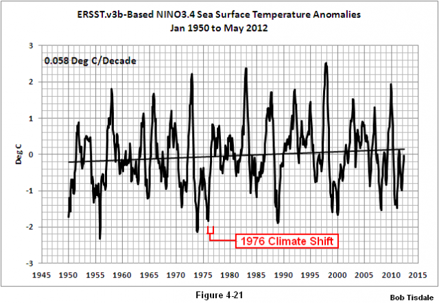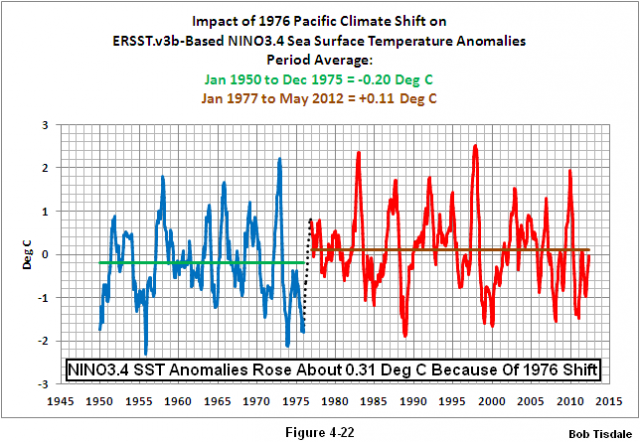 Weiter zur Pazifischen Dekadischen Oszillation PDO: Das UKMO stellt zu Beginn richtig fest, dass es hinsichtlich der Wassertemperaturen im Nordpazifik multidekadische Variationen gibt. Aber dann weicht es tangential von der Linie ab, wenn es die PDO und andere abstrakte Erscheinungen hinsichtlich der Wassertemperatur des Pazifiks behandelt, als ob diese abstrakten Erscheinungen die multidekadischen Variationen der Wassertemperatur im Pazifik nördlich von 20°N oder im Pazifischen Ozean repräsentieren:
