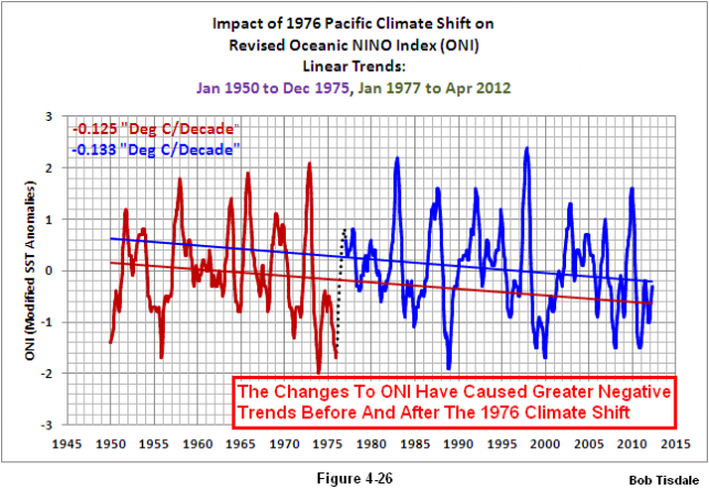 Wir haben die Prozesse besprochen, durch die das durch starke El Niño-Ereignisse zurück gebliebene Restwarmwasser in die Kuroshio-Oyashio Extension gelangt während nachfolgender La Niñas, und dass diese einem starken El Niño folgenden Erwärmungen die Auswirkungen der nachfolgenden La Niña-Ereignisse auf die Luft- und Wassertemperaturen kompensieren. Siehe diesen Beitrag hier.