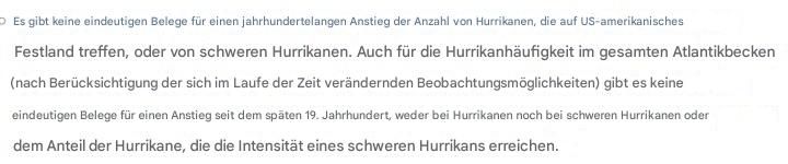 Weiße Zellen weisen auf fehlende oder geringe Zuverlässigkeit eines sich abzeichnenden Signals für Veränderungen hin, was bedeutet, dass es keinen eindeutigen Trend bei Auswirkungen wie Wirbelstürmen, Überschwemmungen oder Dürren gibt. Quelle