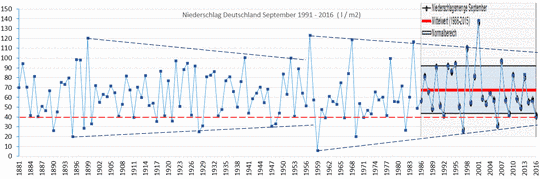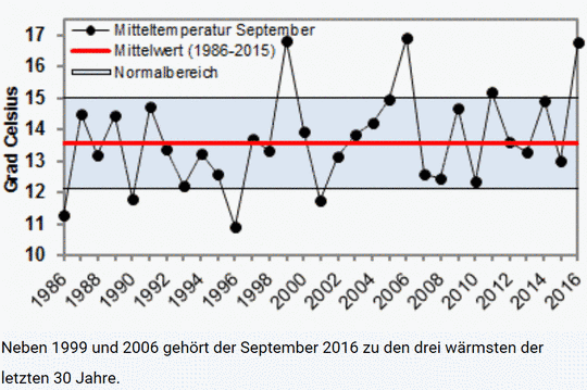 Das folgende Bild zeigt bis einschließlich September 2016 die auf die Jahreszeit bezogenen Temperaturverläufe von Deutschland und dazu als rote Balken die der Erde „zugestandenen“ +0,5 Grad Erwärmung im Jahr 2100. Wohl nur Computerspiele, Klimaberater (und Politiker) schaffen es, daraus einen Klimauntergang abzuleiten.