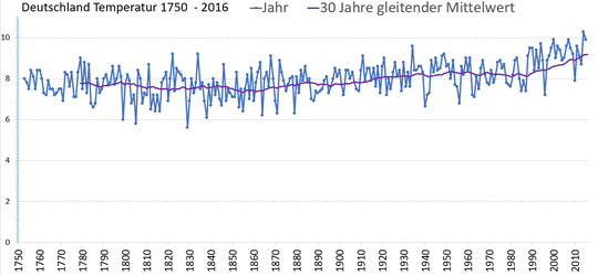 – Deutschland hat seit der letzten kleinen Eiszeit, die ungefähr mit dem Beginn der Industrialisierung endete bereits ca. +1,6 °C Mitteltemperatur klaglos „überstanden“,