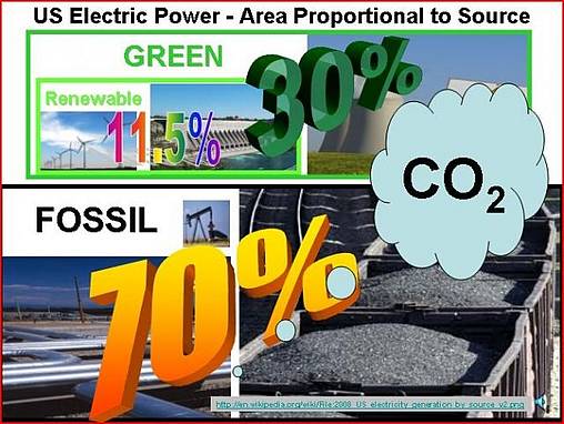 Die „erneuerbare” Komponente der „grünen” Energie trägt etwa 11,5% zur Stromerzeugung in den USA bei und besteht hauptsächlich aus Wasserkraft (Hydroelektrizität) sowie etwas Windkraft und andere Quellen wie z. B. Solarenergie. Diese reinen Formen „grüner“ Energie werden möglicherweise unter dem Schirm von Subventionen der Regierung zunehmen, aber es ist unwahrscheinlich, dass sie jemals mehr als 20% zur Erzeugung unserer Elektrizität in den kommenden Jahrzehnten beitragen, wenn überhaupt.