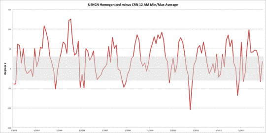 Erst seit Kurzem haben wir die Fähigkeit, Klimadaten automatisch zu sammeln und anzuzeigen, ohne die Einmischung von Menschen. Viele der Temperaturaufzeichnungen, die wir haben, waren manuell gesammelt und angezeigt worden. Wenn Menschen involviert sind, können Fehler auftreten und treten auch auf. Tatsächlich war ich beeindruckt von den Muleshoe-Aufzeichnungen, weil die Beobachter Fehler korrigiert und Beobachtungszeiten angegeben hatten, die außerhalb der Norm an der Station lagen. Mein Eindruck war, dass die Beobachter an jener Station versucht hatten, so genau wie möglich zu sein. Ich habe mir die B-91-Tabellen anderer Stationen angeschaut, bei denen keine solchen Korrekturen oder Eintragungen vorgenommen worden waren. Einige dieser Stationen lagen bei Wohnhäusern. Ist es vernünftig zu glauben, dass die Beobachter niemals eine Beobachtung um 7 Uhr morgens aus irgendwelchen Gründen verpassten, wie z. B. während einer Urlaubsreise, über endlose Jahre hinweg? Dass sie immer ihre Beobachtung gleich beim ersten Mal korrekt niedergeschrieben hatten?