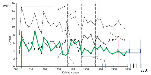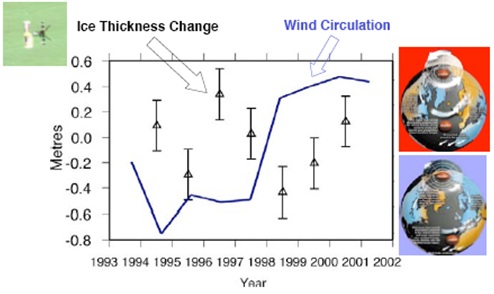 Die kleine Abbildung ist hineinkopiert und zeigt den Schwabezyklus der Sonne im selben Zeitraum. Er stimmt exakt mit dem NAO-Winterindex überein. Dass die Sonne maßgeblich die NAO bestimmt, zeigt bereits die Arbeit ”Length of the solar cycle influence on the relationship NAO-Northern Hemisphere Temperature”, L. Torre, L. Gimeno, M. Tesouro, J. A. Añel, R. Nieto, P. Ribera, R. García, E. Hernández, Geophysical Research Abstracts, Vol. 5, 30-1-2003, European Geophysical Society.