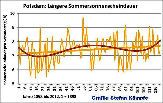 Außerdem nahm die Sonnenscheindauer im Sommer in Potsdam insgesamt leicht zu: