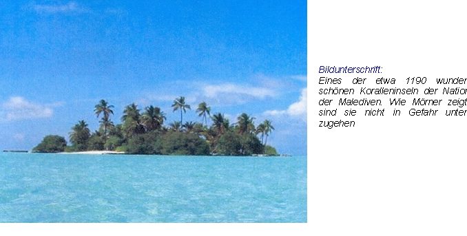 Eindeutige Messungen vor Ort deuten darauf hin, dass der Meeresspiegel weder bei den Malediven noch in Bangladesh, Tuvalu, Vanuatu und Französisch Guayana steigt (Mörner 2007a, 2007b, 2007c, 2010a, 2010b). Alle diese Orte nehmen in der Diskussion um den Meeresspiegel Schlüsselstellungen ein, in der das IPCC und seine ideologischen Erfüllungsgehilfen katastrophale Überflutungsszenarien entworfen haben. Die Wirklichkeit unterscheidet sich jedoch fundamental von den Behauptungen des IPCC, wie ich in einem Beitrag und dem Interview in 21st Century hier dargelegt habe.