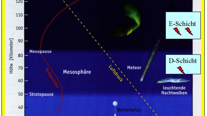 Mancheinem erscheint es sinnvoll, eine Höhe von 50 km zu nennen: è Dort beträgt der Luftdruck nur noch ein Tausendstel des Boden-Luftrucks, è 50 km sind die Höhe, die von Wetter-Ballonen gerade noch erreicht werden kann, und è in 50 km befindet sich die Stratopause, der Übergang zur so genannten Mesosphäre. Eine definierte Lufttemperatur in diesen Höhen zu messen wird wegen der geringen Gasdichte aus physikalischen Gründen schon problematisch, und macht z.B. in der darüber liegenden Thermospäre gar keinen Sinn mehr, denn eine "fühlbare Wärme" für Temperatur-Sensoren aller Art ist in diesen Höhen kaum noch meßbar (Abbildung 1).