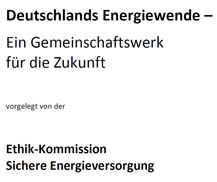(2) Deutschlands Energiewende – Ein Gemeinschaftswerk für die Zukunft vorgelegt von der Ethik-Kommission Sichere Energieversorgung , Berlin den30.5.2011