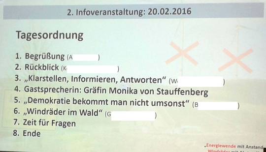 Ein Gemeinderat erzählte von Anfeindungen und anonymen Drohanrufen an die Gegner des Windprojektes, wenn sie im Gemeinderat nicht richtig abstimmen. (in deinem Geschäft wird du das merken). Bürgermeister sind sehr oft gegen Bürgerbegehren, da werden viele Verwaltungsvorschriften zur Ablehnung herangezogen. Im Nachhinein kommen oft Mauscheleien zu Tage. Auch werden zur "Transparenz" gerne Hersteller, Investoren und Anteilseigner zur Aussprache eingeladen. Gegner des Projektes sollen möglichst weg bleiben.