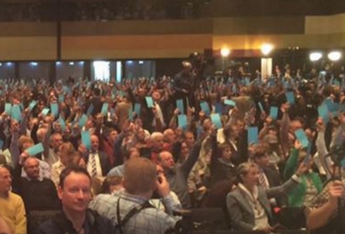 In der Annahme, dass im bereits sehr ausgedünnte Publikum, das zudem nach 2 Parteitagstagen müde war, die Gegner die Mehrheit stellen würden.