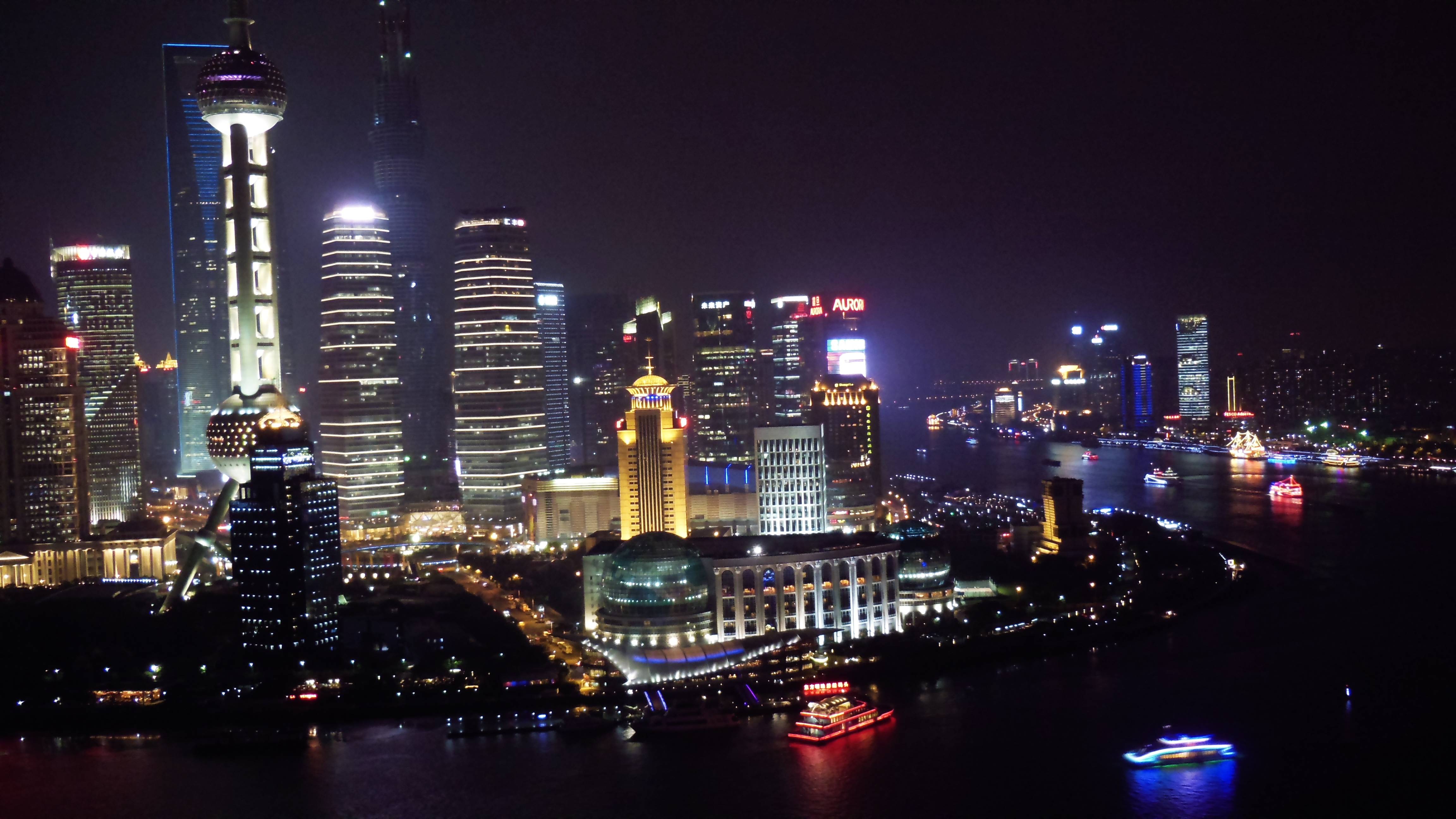 Bild rechts: Shanghai, eine aufstrebende Geschäftsmetropole in Asien – die Lichter der Großstadt lassen sich nicht mit Wind betreiben.