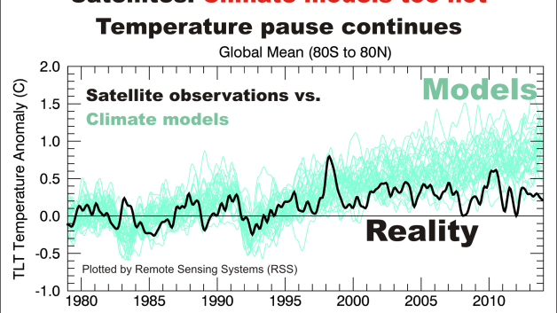 Michaels und Knappenberger stehen nicht allein da. Aus Satellitenmessungen abgeleitete Temperaturwerte zeigten einen „Stillstand“ der globalen Erwärmung seit mindestens der letzten 18 Jahre, trotz steigender CO2-Emissionen. Während einige Wissenschaftler versuchten, diese Satellitenmessungen zu diskreditieren, waren sie nicht in der Lage, das Fehlen einer signifikanten Erwärmung während der letzten Jahre zu erklären.