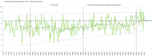 Verlauf der vier Jahreszeiten in Deutschland seit dem Jahr 1750