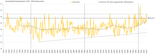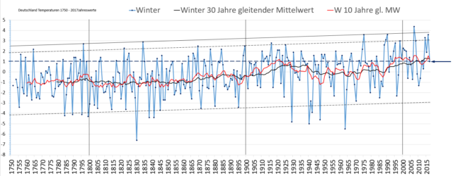 Bild 4 Winter Deutschland seit 1750. Grafik aus den DWD-Daten vom Autor erstellt