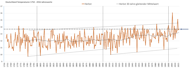 Die Jahreszeiten-Grafiken zeigen auch, dass in Deutschland keinesfalls von einer „Erwärmungsbeschleunigung“ durch CO2 gesprochen werden kann. Die vielen AGW-Darstelllungen mit der Aussage: „aber noch nie in der Vergangenheit geschahen die Änderungen so schnell wie aktuell“, erweisen sich bei langfristigen Betrachtungen als haltlos.