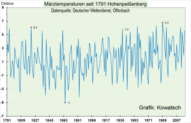 Eine weitere Anmerkung: Das März-Monatsmittel 2017 auf dem Hohenpeißenberg war nicht 5,6°C (wie sie berichten) sondern 6,1°C.