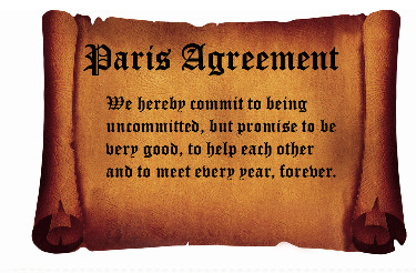 Das Pariser Klima-Abkommen, weit davon entfernt, globale CO2-Emissionen zu reduzieren, ist im Wesentlichen ein Blankoscheck, der es China und Indien erlaubt, ihre Emissionen zu steigern, wenn sie dies für ihr ökonomisches Wachstum für notwendig erachten. Dies ist die Schlussfolgerung einer Studie von Prof. David Campbell (Lancaster University Law School), welche von der GWPF veröffentlicht worden ist. Tatsächlich enthält das Paris-Abkommen eine grundsätzliche Erklärung des Inhalts, dass Länder wie China und Indien nicht verpflichtet werden, überhaupt irgendwelche Reduktionen vorzunehmen. – Global Warming Policy Foundation, Mai 2016