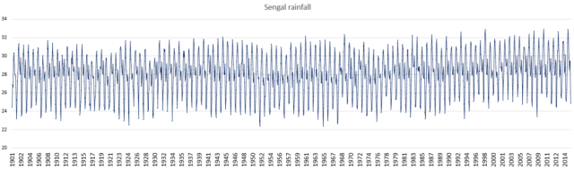 Bild 9 Niederschlagsdaten Senegal in Monatsauflösung 1901 – 2015. Quelle: Klimate Change Knowledge Portal der WORLD BANK GROUP