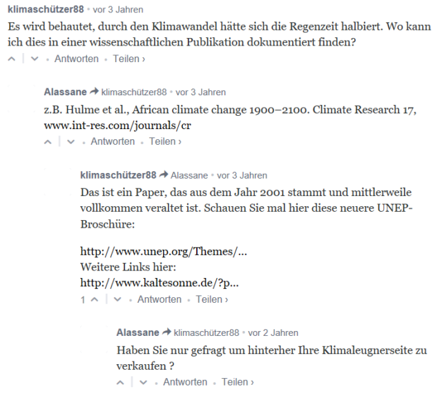 Richtig „rührend“ sind auf Klimaretter die (wenigen) Blogbeiträge. Kritische werden sowieso von der Moderation schnell unterdrückt und der Rest sieht dann typisch wie folgt aus:
