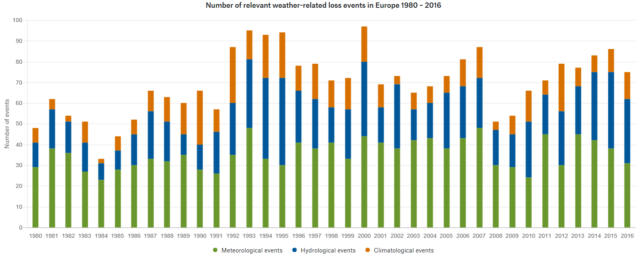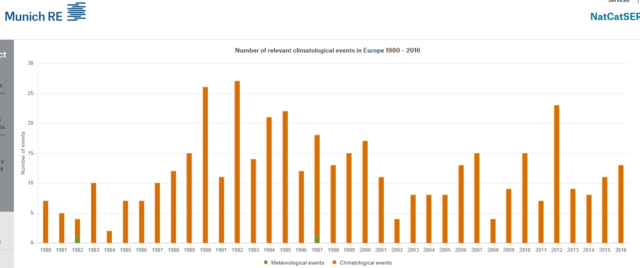 Bild 9 Daten der Münchner Rückversicherungsgesellschaft zu Wetter-bedingten Ereignissen in Europa seit 1980