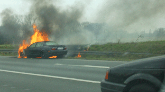 So weit ich das erkenne, ist auf dem Photo kein brennendes Elektroauto zu sehen, ich kann das Modell aber leider nicht erkennen. Würde ein Elektroauto brennen, wäre der Rauch tiefschwarz, dazu hochtoxisch (u.a. HF) und kanzerogen (Kobaltoxide). Wer sich in der Nähe eines brennenden „Weltrettungsautos“ befindet, sollte möglichst großen Abstand halten und AUF KEINEN FALL den Rauch einatmen. Bei wechselnden Winden: Rette sich, wer kann!