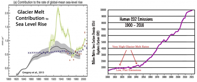 Doch auch mittelfristig taugt die Gletscherschmelze nicht zum Beleg des AGW-Klimawandels. die wesentliche Gletscherschmelze fand bereits vor den 50er-Jahren des letzten Jahrhunderts statt – und verlief gegen den CO2-Trend: