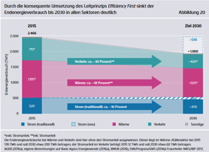 Gelingt etwa die avisierte Steigerung der Effizienz bei Wärme und Verkehr nur zur Hälfte und müssten die fehlenden Einsparungen durch strombasierte Heiz- und Kraftstoffe gedeckt werden, würden hierfür zusätzliche Strommengen in Höhe von rund 470 Terawattstunden benötigt.[44]