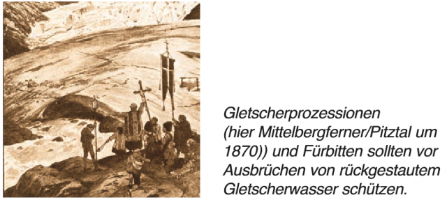 Bild 3 Prozession wegen Überflutungsgefahr durch einen Gletschersee. Quelle: Abt. Wasserwirtschaft beim Amt der Tiroler Landesregierung, Broschüre: Innsbruck und das Hochwasser GESCHICHTE UND GESCHICHTEN