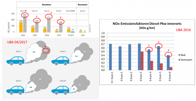 Abb.29 links, Quelle: (http://www.umweltbundesamt.de/presse/pressemitteilungen/luftqualitaet-2016-stickstoffdioxid-weiter) stammt aus der Pressekonferenz des Umweltbundesamts vom 31.01.2017 und Abb.29 rechts, Quelle (http://www.umweltbundesamt.de/presse/pressemitteilungen/stickoxid-belastung-durch-diesel-pkw-noch-hoeher) aus der Pressekonferenz des Umweltbundesamtes vom 25.04.2107.
