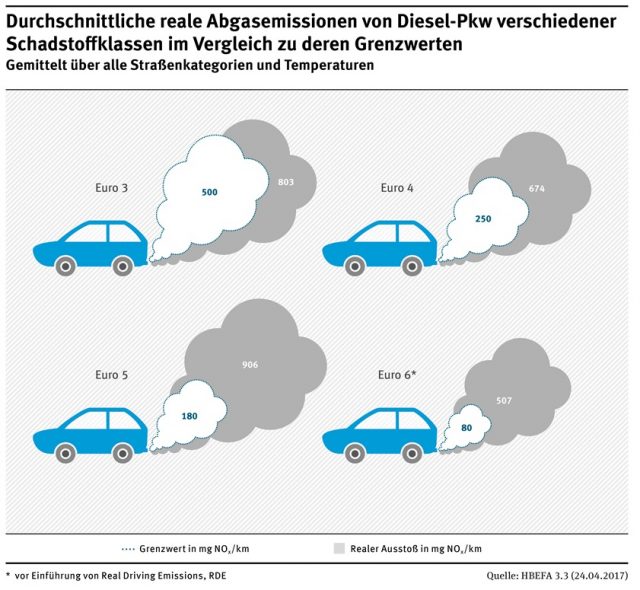 Wie der Autor bereits angab, hatte das Umweltbundesamt in seiner Pressekonferenz am 25.04.2017 einer staunenden Öffentlichkeit mitgeteilt, dass dort in der Vergangenheit falsch gemessen wurde, was auf Deutsch nichts anderes heißt, das man nicht wusste, was man eigentlich macht – aber Hauptsache, man macht was. Auch, wenn sich diese Selbsterkenntnis des UBA und seiner Ministerin, sich weitgehend mit den Eindrücken deckt, die der Autor bisher vom Umweltbundesamt und seiner Ministerin gewonnen hat, hat er doch so seine Zweifel, ob dies die Beweggründe zum Heraufsetzen der Diesel-Pkw-Stickoxidwerte sind.