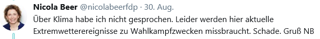 [3] DER KLIMA-LÜGENDETEKTOR 4. September 2017: Nicola Beer (FDP): „Fake News“ zu Extremwetter