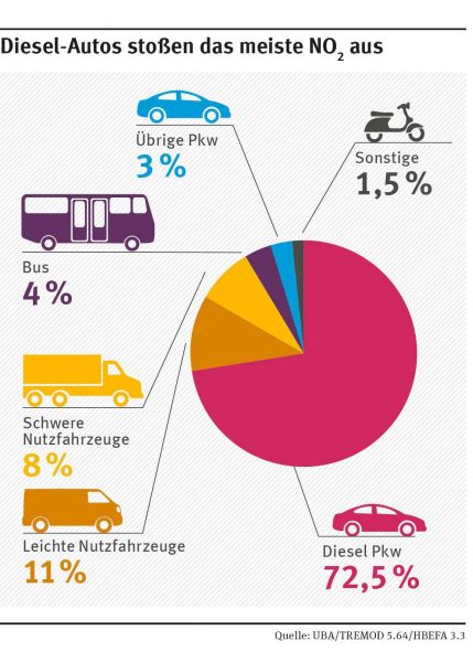 Bild 9. Vom UBA den verschiedenen Straßenfahrzeugtypen zugeordnete NO2-Emissionsanteile (Grafik: UBA)