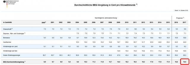 – Die Leistungsdeckung der gesamten EEG-Einspeisung im Jahr 2016 betrug laut BMWi: 29 %,
