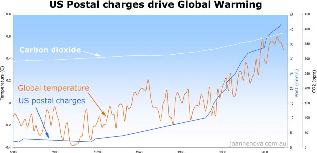 US Postgebühren treiben die globale Mitteltemperatur in die Höhe! Oder ist es umgekehrt? Mit Dank an J. Nova