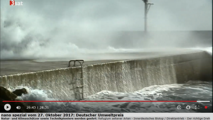 So meldet es ein Video seit dem Wochenende in der 3sat Mediathek zum deutschen Umweltpreis: [3] nano spezial vom 27. Oktober 2017 Deutscher Umweltpreis Natur- und Klimaschützer sowie Technikpioniere werden geehrt