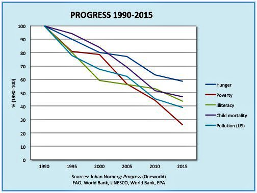 Wir leben in einer Zeit nahezu unbegrenzten Wohlstandes. Die Armutsrate ist auf ein unvorstellbar niedriges Niveau gesunken. Dies ist eine Zeit, wenn die Definition von Armut in den USA so hoch angesetzt ist, dass ein heutiger armer Mensch in den USA von jeder wohlhabenden Person vor dem 2. Weltkrieg beneidet worden wäre. Die Ungleichheit in der Welt liegt auf dem niedrigsten Niveau jemals und nimmt mit rapider Rate weiter ab. In elender Armut geborene Menschen können heute Doktoren und Anwälte werden. Warum es immer noch Untergangspropheten gibt, die das Ende der Welt prophezeien, entzieht sich meinem Verständnis.